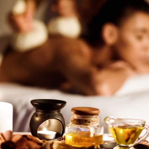 Ein aromatisch duftendes Aroma-Öl wird bei der Aroma-Öl-Massage sanft in die Haut gerieben. Das Besondere an dieser Wellness-Anwendung ist, dass sie den Körper entspannt und gleichzeitig die Seele verwöhnt. Ein beruhigendes, sinnliches Erlebnis für Körper und Geist.